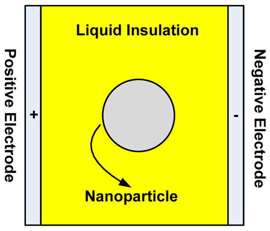 Recently, the use of nanotechnology to improve the dielectric properties of liquid and solid insulating materials has increased. The increase in using nanotechnology to improve the dielectric properties of electrical insulation (liquid or solid) is due to the promising properties achieved by the addition of small amounts of nanoparticles. Hence, the addition of semi-conductive nanoparticles to transformer oil results in increased breakdown strength [1,2,3,4,5], as well as improved thermal properties [5,6,7]. Adding magnetic nanoparticles to transformer oil was also found to increase the breakdown strength of liquid dielectrics [8,9]. Regarding solid dielectrics, nanofillers can also increase their breakdown strength. This was validated with epoxy [10,11,12,13,14,15,16,17,18], silicone rubber [16,19], ethylene propylene diene monomer rubber (EPDM) [16] and cross-linked polyethylene dielectrics [20]. In fact, breakdown strength is one of the most important dielectric properties for both liquid and solid insulation. Therefore, it is very important to know the role of nanoparticles in improving the breakdown strength for these types of insulation (liquid and solid). In other words, a full understanding of the breakdown mechanisms for nanofluids and solid nanocomposites is required.