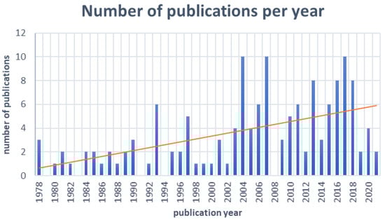 Number of key publications on gas engine heat pumps per year. Resources: Scopus and Science Direct.