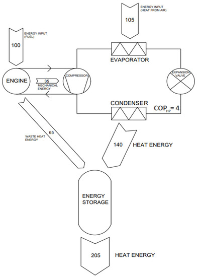 - Shah, N.; Huang, M.; Hewitt, N. Performance analysis of diesel engine heat pump incorporated with heat recovery. Appl. Therm. Eng. 2016, 108, 181–191. [Google Scholar] [CrossRef]