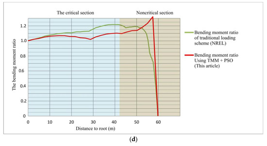 Compared with the biaxial forced displacement loading and hybrid biaxial testing, the virtual-mass loading device adopts resonant loading in both directions, which has lower energy consumption. However, Equation (17) shows that the force exerted on the blade by the flap-wise and edgewise hydraulic loaders will affect the bending moment distribution in both directions at the same time, leading the moment matching to result in errors.