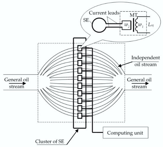 The sensing elements (SE) are installed in each independent stream and form a cluster of SE. Every SE is connected to the individual MC using current leads and the matching transformer (MT). The changes of the MT’s equivalent inductance (