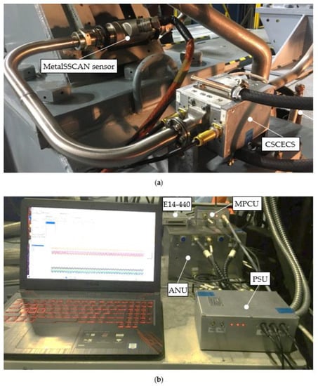 Figure 5b) was located on an individual rack at 8 m from SCECS. The operation of the system was controlled, and the readings were monitored using an additional remote workstation located in the operator’s cabin of the bench at a distance of 40 m.