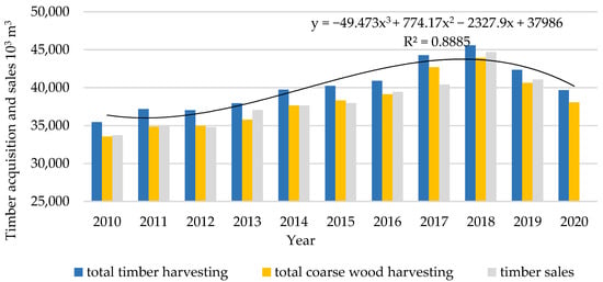 Acquisition of wood. Source: own elaboration based on Statistical Yearbooks of Polish Forestry Source [30,31]; own elaboration based on the available publications.