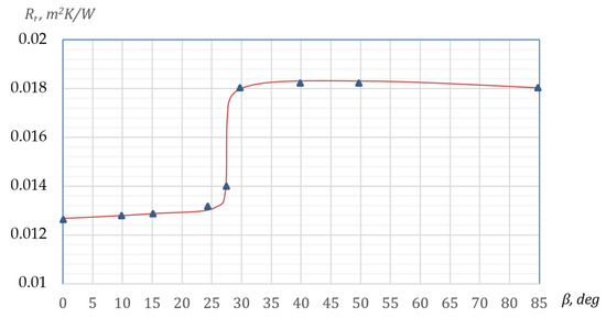 Dependence of the thermal resistance of a double-glazed window on the inclination angle β.