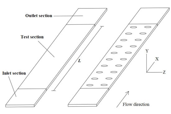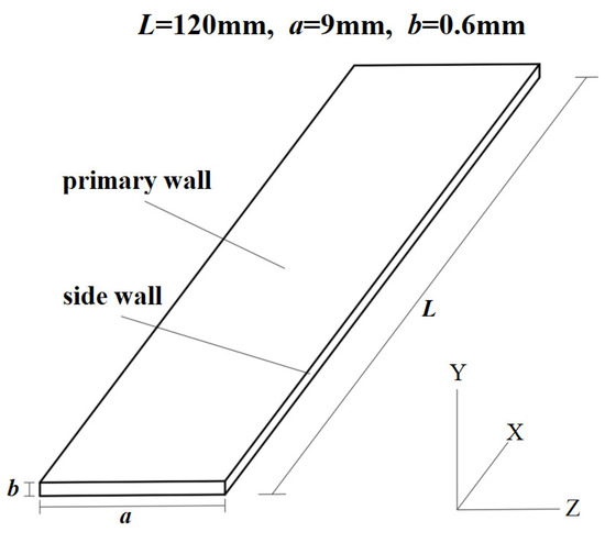 The microchannel without semi-ellipsoidal protrusions in this study is shown in Figure 2. The dimensions of microchannel are height a = 9 mm, width b = 0.6 mm, and length L = 120 mm. This smooth microchannel is called as the test section in the following sections.