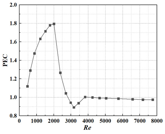 where f0 and Nu0 are the friction factor and Nusselt number of the smooth channel. Since the resistance and heat transfer must be considered comprehensively when designing the heat exchangers, PEC is proposed to measure the comprehensive performance.