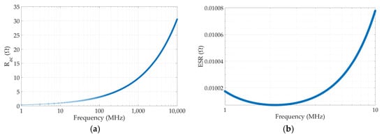 Figure 2a,b. The corresponding parasitic resistances of the energy-storing elements increase with the operating frequency.