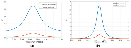 Figure 7b shows that on the receiver. The Q factor of the CCL circuit is almost quadruple that of the series one, and identical circumstances exist for the receiver.