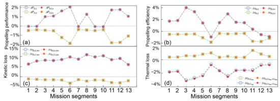 The first term in Equation (20) coincided with the propelling power, and the second is called thermal and kinetic loss since it cannot be utilized by the engine. Both are defined as follows: