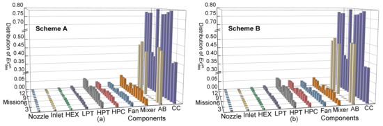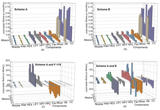 Numerous studies have noted that exergy analysis has wide application prospects in the field of aviation propulsion systems. The exergy analysis is reliable in evaluating the energy utilization of different engines in detail. Ozgur Balli and Hakan Caliskan [19] applied the exergy analysis to the operation performance assessments of turboprop engines at on-design and off-design points. The superiority of the variable-cycle engine could be revealed by the exergy method by comparing its exergy efficiency with the traditional engine [20]. Recently, Hakan Aygun et al. [21] also pointed out that the exergy efficiency of variable cycle engines was various during the whole flight phases. The exergy method has been successfully applied in analyzing a series of engine cycle parameters. Some discovered that commercial turbofan engines with high bypass and overall pressure ratio showed prominent advantages considering energy efficiency and environmental costs [22]. Taking the exergetic parameters as the target, the cycle parameters of the PW-4000 engine could be optimized to improve the efficiency of energy utilization [23]. The conventional exergy method identifies the locations and magnitudes of thermodynamic irreversibility. Based on this, the advanced exergy method identifies the potential improvements for a real thermodynamic process by dividing the exergy destruction into its avoidable and unavoidable parts [24]. The primary role of advanced exergy analysis is to provide engine designers and operators with useful information for improving the design. Hepbasli et al. [25,26] pointed out that the avoidable exergy destruction occurring in the combustion chamber, compressor, and turbine was significantly higher than in other components. These findings suggest that optimizing the design of compressors, combustors, and turbines to reduce their avoidable exergy destruction deserves more attention.