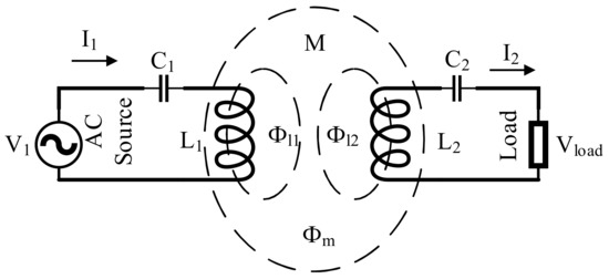 A variation in either the phase shift between the two converter bridge legs, the switching frequency or the DC-link voltage occurs [76,77,88]. The basic voltage equations can be written with fundamental frequency and depicted AC equivalent circuit in Figure 17 for IPT, where M is the mutual inductance of the transformer: