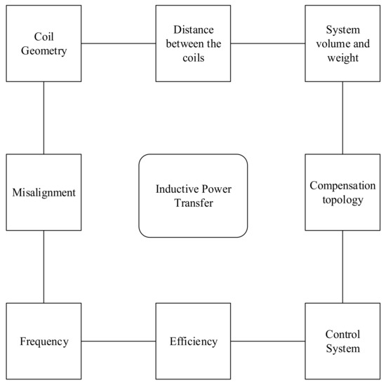 In this part of the paper, critical design parameters of an IPT system are investigated in detail under subsections, and different system designs that have been studied in the literature are presented and discussed. First of all, a presentation of the critical design parameters that affect an efficient power transfer system is given in Figure 6.