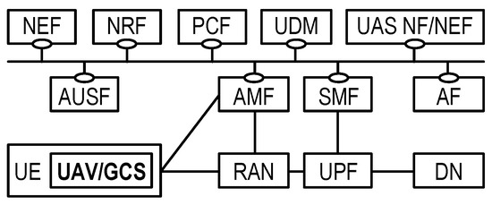 - 3GPP. TS 23.256: Support of Uncrewed Aerial Systems (UAS) Connectivity, Identification and Tracking; Stage 2; Ver. 17.3.0; 3rd Generation Partnership Project: Sophia Antipolis, France, 2022. [Google Scholar]