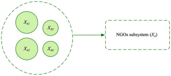 - NGOs subsystem. Environmental protection is one of the fields in which NGOs are active [56], and an increasing number of environmental NGOs and social work NGOs are participating in the mobilization of integrated MSW management [57]. NGOs tend to adopt a basic strategy of publicity and education by implementing a variety of MSW management activities the public can easily accept in order to improve the public’s knowledge of MSW treatment and their consciousness of environmental protection. Collaborative efforts with NGOs, including publicity and education can effectively raise the public’s environmental awareness. Moreover, NGOs play a role in organizing or sponsoring MSW management activities [22], and also share the supervision responsibilities of MSW management with the government to minimize the behaviors of rule violation [58]. NGOs’ supervisory (watchdog) role facilitates greater progress in integrated MSW management and sustainable development. Therefore, these evaluation indicators should be considered in NGO engagement in integrated MSW management.