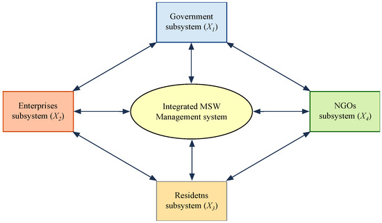 Under the premise that integrated MSW management evaluation indicators system has been determined, the engagement of each stakeholder plays a vital role to upgrade the existing status of MSW management services. The evaluation indicators act on the behavior of each stakeholder in reverse and become a reflection of the evolutionary trend of the entire integrated MSW management synergy system and each subsystem. These four core subsystems are interrelated and interact with each other, and their coordinated interaction produces a positive synergistic effect, which guides the evolution of the whole system and holds the entire integrated MSW management system in an ordered and stable state, so that the requirements of high efficiency for integrated MSW management are achieved and the sustainable development of the environment is boosted.