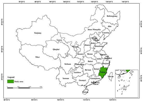 Fujian province, which is located on the southeast coast of China (Figure 1), is a region with rapid economic development. In the context of the epidemic in 2020, the GDP of Fujian ranked 7th in China (CNY 43,904 billion), demonstrating a more rapid development compared with its former ranking (12th) in 2006 (CNY 844 billion). Meanwhile, its per capita GDP ranked 4th in China, next to Beijing, Shanghai, and Jiangsu.