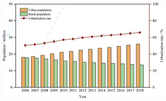 Fujian province had 14,371,078 families in 2020. The urbanization rate of Fujian is 68.75%, which is higher than that of China (63.89%), thus ranking 8th overall. Compared with the sixth national census in 2010, the urban population increased by 7,492,818, the rural population decreased by 2,846,948, and the proportion of the urban population increased by 11.66%. Figure 2 shows that the urbanization rate of Fujian is in a state of gradual improvement. Therefore, the characteristics of HCEs of urban and rural residents in Fujian province under steady urbanization and rapid economic growth are worth exploring.