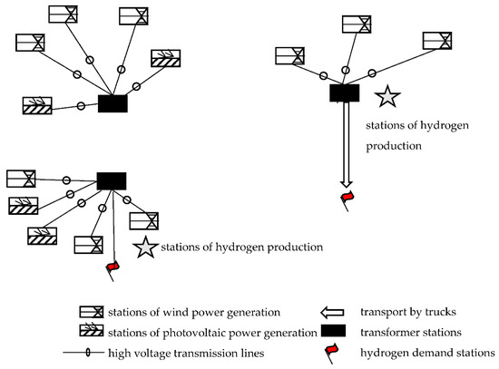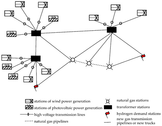 - The stations of hydrogen production and storage only depend on transformer stations, stations of hydrogen production, stations of hydrogen storage, natural gas stations and hydrogen demand stations.