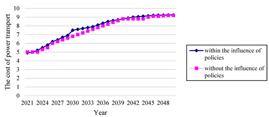The cost of power transport is not significantly affected by the policy. The cost of power transport by transformer stations and hydrogen production stations is affected by the amount of hydrogen demand which is affected by market supply and demand. Based on the Figure 7, it can be seen that the changes of policies do not affect the cost of power transport directly.
