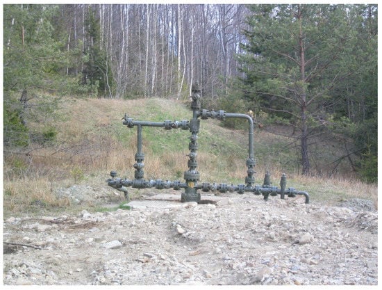 In the mining industry, significant attention is paid to safety and production efficiency. In particular, this is reflected in the annual growth of efforts and costs aimed at ensuring the integrity of oil and gas wells [,,]. The life cycle of a well includes several stages, such as design, construction, operation and abandonment. One of the main problems at the stage of well operation is the risk of uncontrolled leakage of hydrocarbons into the environment. This problem is especially relevant for the long-term operation of wells. The human factor has been identified as the most common cause of catastrophic accidents in the oil and gas industry []. However, there are threats that are relatively independent of human impact, for example, the destruction of casing strings due to landslides [,] or the collapse of deep wells built in unstable formations such as mudstones, bischofites, shales and layers of plastic mineral salt [,,,,].