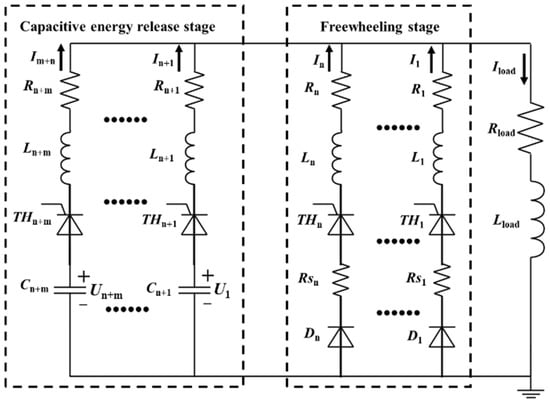 Assume that n PFUs are in the freewheeling stage and m PFUs are in the capacitive energy release stage at some point; then, the circuit can be simplified as Figure 3 shows.