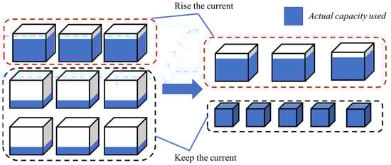 As Figure 9 shows, before miniaturization transformation, all capacitors are the same and have a capacity of 90.25 kJ. After miniaturization transformation, the first several capacitors charged to high voltage remain unchanged. Other capacitors are transformed into some with smaller capacity according to the actual energy required. The parameter Rη and Rv is introduced to describe the optimization performance of the miniaturization transformation, and R can be expressed as follows: