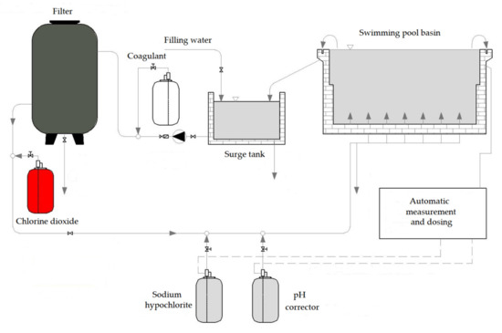 - Judd, S.; Bullock, G. The fate of chlorine and organic materials in swimming pools. Chemosphere 2003, 51, 869–879. [Google Scholar] [CrossRef]
