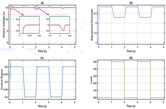- The proposed controller’s effectiveness and robustness are validated through simulation and hardware implementation when subjected to load variations, input voltage changes, and reference voltage changes.