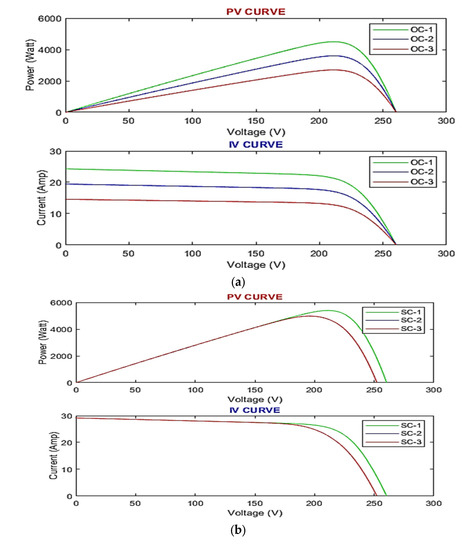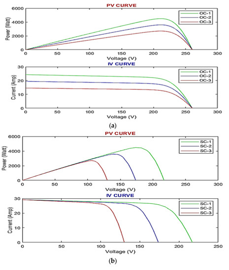 Finally, it is important to mention that non-uniform distribution of collected current, thermal runaway, and capacitive effects cause kinks in I-V and P-V curves. Whereas shading produces multiple power peaks in the PV curve of normal PV arrays, but the above-mentioned factors affect the shaded PV curve with kinks and uniform reduction. There are multiple factors which deviate IV and PV curves such as insolation, tilt angle, snail fault (cell cracks), failure of bypass diodes, interconnection failures (open circuit and short circuits), and degradation. In this research work, three major factors are addressed which underlay almost all other factors. For example, interconnection failures, cell cracks, and bypass diode failures are subcategories of internal open-circuit and short-circuit faults. In an open-circuit fault the connection/line breaks while in short circuit it shortens. While external faults are inter- or intra-string/array faults.