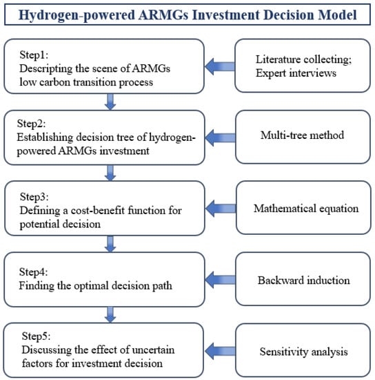The specific process of the five steps for the hydrogen-powered ARMGs investment decision model.