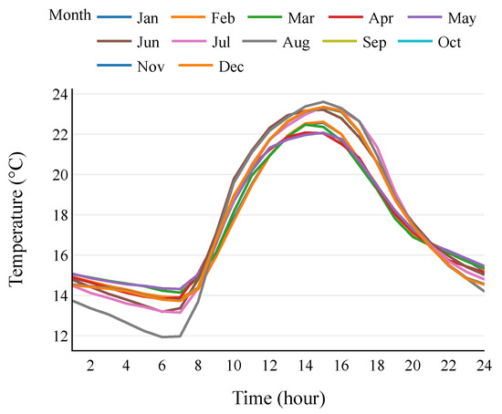 Figure 7 is the daily average temperature for one year for a month. The average temperature at noon is around 23 °C. The month with the highest temperature is August.