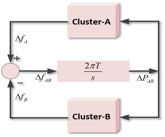 The representation of the tie-line for connecting the two clusters is shown in Figure 2. The tie-line power deviation can be expressed in terms of the frequency deviation:
