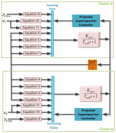 Finally, from the presented small-signal equations, the integrated small-signal model of the microgrid clusters is developed as shown in Figure 3. The next section provides details of the fractional-order supercapacitor controller.