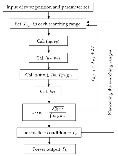 Incorrect results are also obtained when the rotor at issue exists in the wake of other rotors if the wide searching range of circulation is applied. In our method, we propose a procedure to search for the appropriate result close to the CFD result, in which the searching range of circulation of each rotor in a VAWT wind farm is limited in the manner described below.