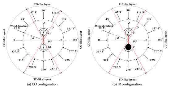 The layouts between selected two 2D-VAWT rotors can be roughly categorized into four kinds according to the relative rotation condition against the main flow