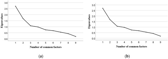 Scree plots. (a) Scree plot of oil-importing countries. (b) Scree plot of oil-exporting countries.