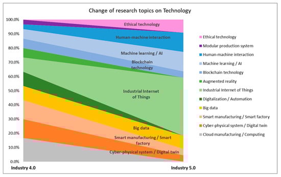 From Industry 4.0 toward Industry 5.0: Change of research topics on technology.