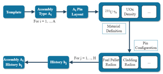- The configuration of the fuel or reflector assembly defined by the assembly specifications, such as the pin pitch, number of pin per assembly. Those specifications are required in the PMAXS for pin power reconstructions.