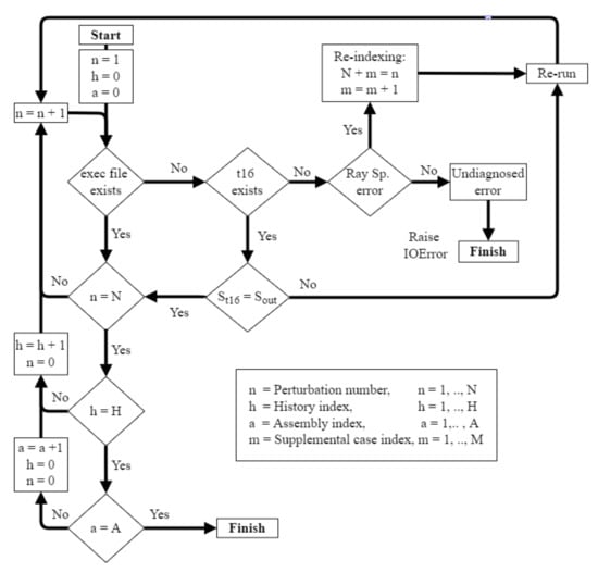 - If a ray spacing error occurred, another perturbation is drawn from the supplemental inputs. The supplemental case indexed is re-indexed into , the case is re-run, and then the sequence moves on to the next perturbations, .