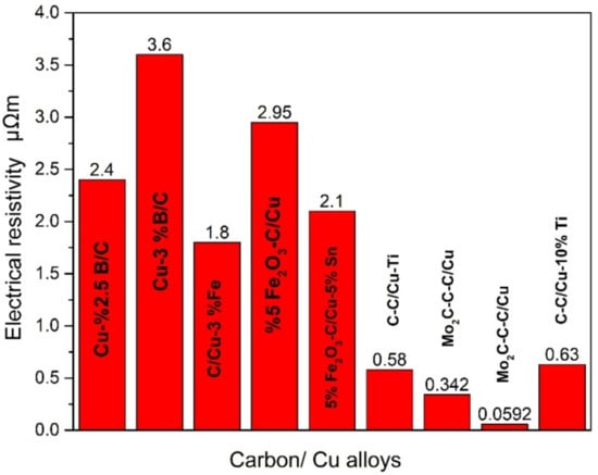 Moreover, new trends in technologies and improvements were incorporated, such as the usage of ultra-fine particles and nanoparticles of carbide forming elements on the carbon–copper interface usually in the range of 500 nanometers to 3 microns (Table 3). It can be expected that the trend of using nano-sized carbide forming elements will increase in future works. Even previously well-known carbides, such as WC or TiC, ZrC, will be probably reconsidered again and used.