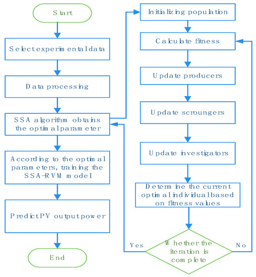 where is the kernel width. The SSA algorithm is utilized to search for the optimal parameters of the RVM model for the best PV power forecasting performance, and the optimal procedure can be summarized in the following steps: