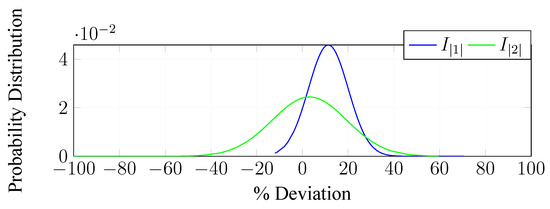The deviation of the measured results of the stator’s currents is shown in Figure 8. In the figure, the distribution of the simulated versus actual measurements over the subsynchronous speed range of the motor is shown. A mean deviation of % to the estimated readings for the stator’s power winding () and % for the stator’s control windings () is observed. Additionally, the standard deviation for the power winding currents was determined to be and for the control winding currents. This indicated that although the model current estimates for the power winding currents were slightly offset from the real values, the surety of the estimates were more reliable than for the control windings.