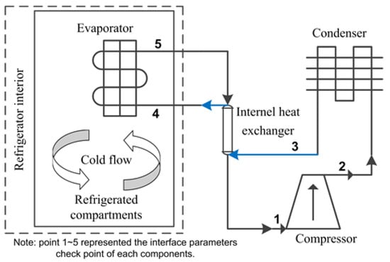 The performance-matching method based on the energy flow model is illustrated with the following example for a certain 265 L refrigerator whose daily electricity consumption is 0.6958 kW·h/24 h.