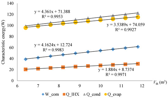 The influences of compressor theoretical volumetric capacity on EFE characteristic energy.