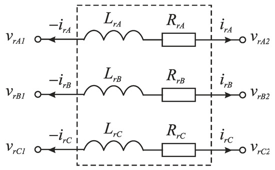 According to the approach used, the calculation scheme of the three-phase choke is presented in six-terminal form (Figure 3).