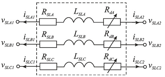 where —choke phase currents at the end of the integration step; —choke phase currents at the start of the integration step; —pole potentials; ,,—active resistance in the choke phases; ,,—the inductance of the choke.