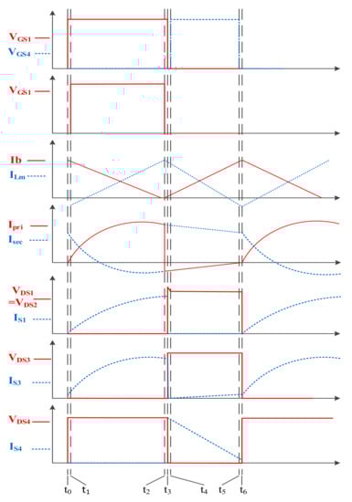 The waveforms of the key components operating in Stage 1 are shown in Figure 4.