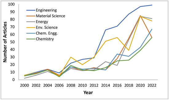 - Engineering and Environmental Science were witnessed as the most relevant subject areas with more than 50% of total publications. The significance of most contributing journals was inferred from their impact factor, h-index, and CiteScore.