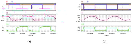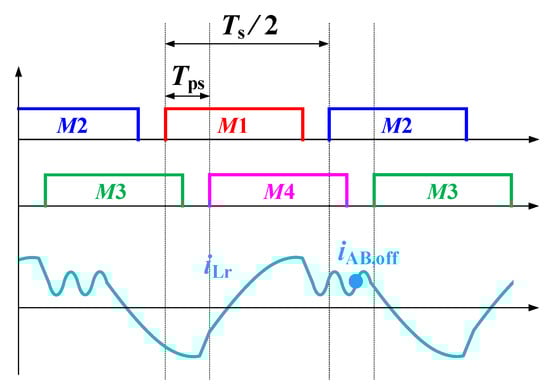 In Figure 17, as the turn-off current of the leading leg, M1 and M2, is higher than that of the lagging leg, M3 and M4, in order to guarantee ZVS of four MOSFETs, the dead time of the HVS MOSFETs should meet the requirement