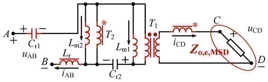 Equivalent FHA circuit in step-up mode. (The symbols of “*” are dotted terminals of T2).